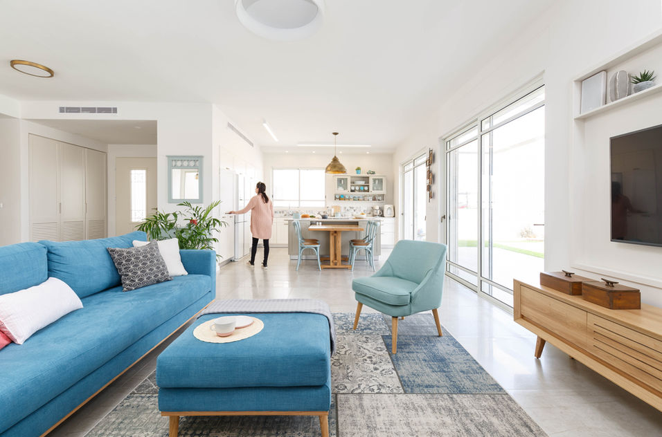 וילה פרטית בבניה חדשה, מפלס אחד. ליווי מלא משלב התכנון הראשוני, ועד לבחירת הפרט האחרון. עיצוב רך ונעים, בצבעי חול וים בהשפעת הסביבה הטבעית.